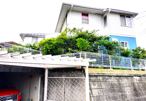 経年により木製アーチやフェンスは少しずつ朽ちグラつきなど発生し、北側から東側へと周囲を囲む樹木カイズカイブキは成長と共に園路や通路を圧迫し、道路から高さのある樹木のメンテナンスは、植物の大好きなT様でも剪定や刈り込みといった作業が年々危険で不安定なものとなり、どうしたら良いかと思うようになって居られました。