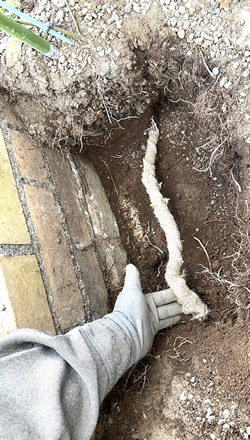 私たちはバラの根を痛めることの極力無いような箇所の根の整理や、フェンス柱の基礎の位置の地中整理から始めさせていただきました。