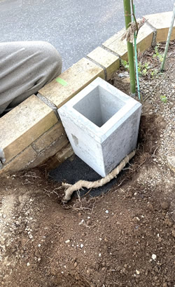Tさまは多くのバラを長い間大切にされておりますので、特に植物根の保護には充分気をつけつつ無理のない箇所へフェンス基礎の多くを建て込みました。
