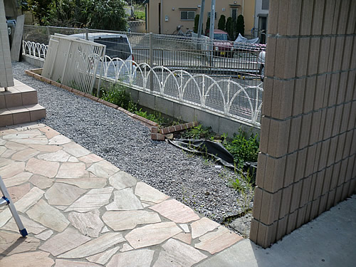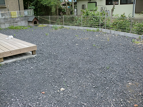 当初、フロントヤードの駐車場は砂利敷でした。通学途中のお子様が砂利敷の小石を蹴りながら登下校したり、雑草や犬の後始末がされず残っていたりすることも数々見受けられました。