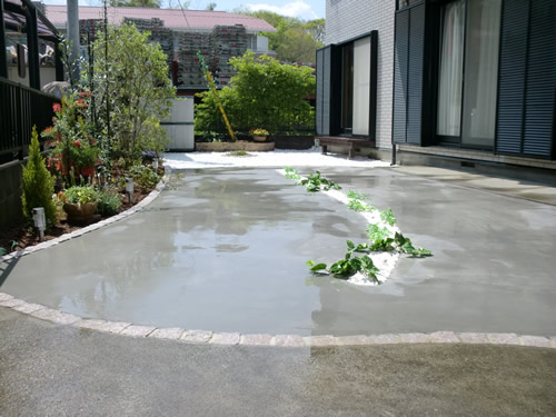広々とした南向きのお庭や屋内の窓辺で、植物や季節のお花を育みながら楽しまれていますS様。今年度より社会人としてご活躍されていますお子様の増車に伴う駐車場の増設と、広い敷地に対して入口部分が狭く絞られた区画です。