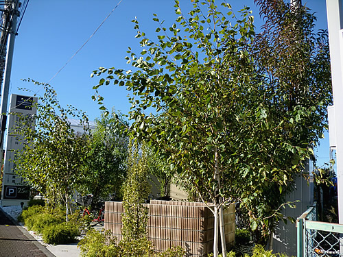また、夏季のアスファルト道路や駐車場、コンクリートからの熱気を枝葉の中を風が自然に通り抜けて建物側へ運ばれていく中で気温の上昇とCO2を抑制してくれます。樹木自体に風が通り抜ける透かしの剪定で病害虫の発生を抑えることができます。