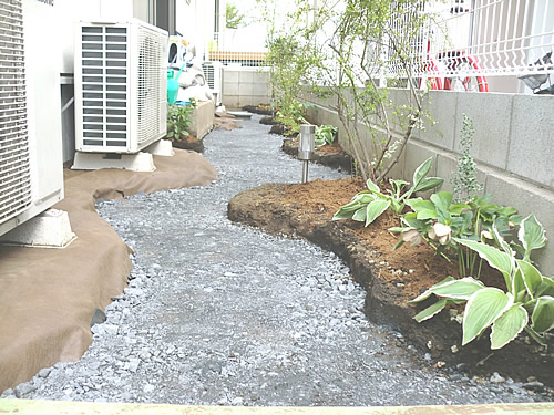 ・化粧砂利敷き(防草シート布設)