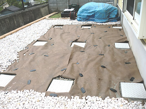 ・化粧砂利(既存砂利同製品)3種類敷込(防草シート布設)