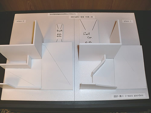 御提出をさせていただきました外構図面では高さの表現や奥行感が御説明しにくかったので今回は、外構模型を作らせていただき御説明をさせていただきました。