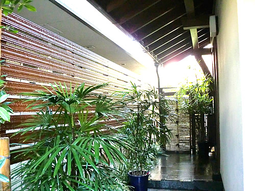 今回、お庭の御相談といたしまして、玄関アプローチサイドの樹木が幾度と無く立ち枯れを起こし、隣接されております集合住宅との堺垣を、目隠しの機能で風通しの良く、柔らかな色合いで朽ちることのない素材でお創りになりたいとの御相談です。