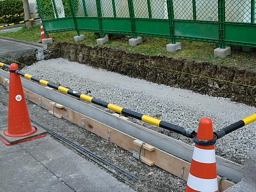 また、植栽スペースと歩道では地盤に高低差がありますので、強くて重量の在る土留めコンクリートブロックを設けております。