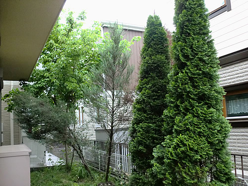 青梅市内の閑静な住宅街。建物南側に位置しますI様邸のお庭では、成長し過ぎてしまったコニファーが立ち枯れてしまい、また冬の大きな雪で倒れた状態でした。
