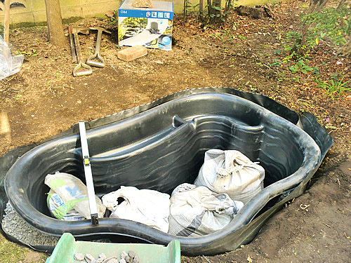 今回、長い間住宅側へ設けていた池の水が少しずつ床下部へ浸透が及んでしまい、お庭側へ新たな池を造ることとなりました。