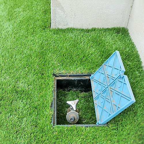 今回のリアルタイプ人工芝は水捌けの良い毛足30mmの防炎タイプ。1枚もので継ぎ目の無いように施工させていただきました。