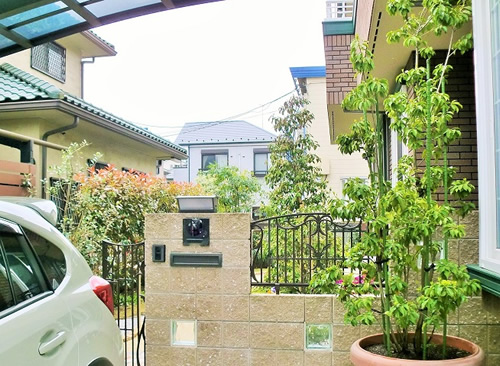 またキッチンで料理する奥さまのご要望としまして優しい枝葉のゆらぎが欲しいと、強い西日を嫌うハイノキを。 夏の朝日が眩しいと窓の木漏れ日にソヨゴの雄木を植込みました。