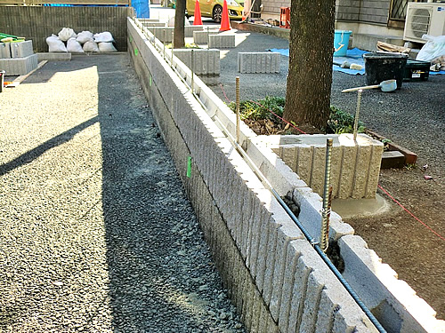 こちらのブロックフェンスも、お敷地内外で高低差があり土留めを兼ねたブロック塀です。