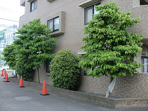 剪定後の樹木はこれから、夏の強い日差しを受けるので、枝葉量をコントロールしながら剪定を施し、樹木の幹焼けや、過度の蒸散防止を考慮しながらの作業と成りました。