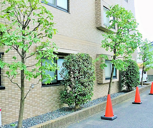 植込みの一部では放置自転車やポイ捨ても見られましたので、樹木の透かし剪定や枝葉整理、下枝剪定を施しました。