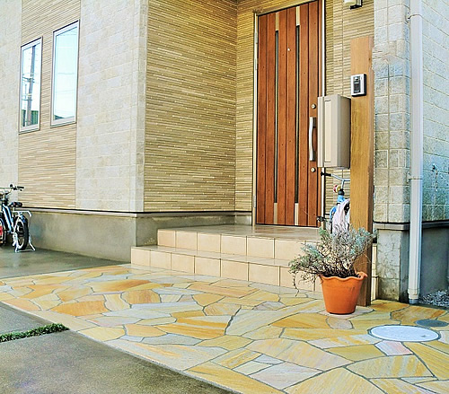 ・玄関前アプローチ / 天然石乱形貼り(クオーツサイト /ムーン)