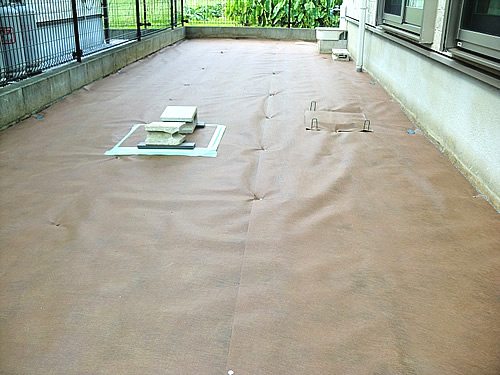 今回、ローメンテナンスガーデンとしまして、丈夫で強固な防草シート下地の上へ、防炎遮熱タイプの人工芝や化粧砂利を敷設いたしました。