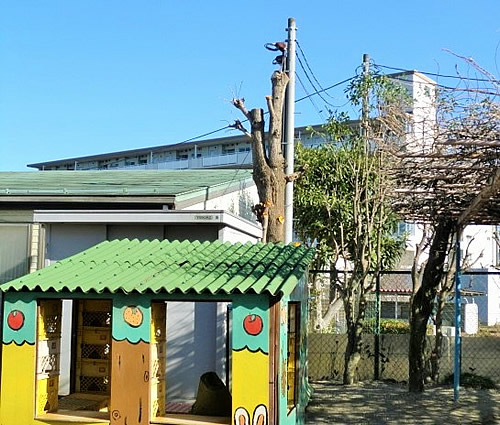 園庭内での樹木作業となりますので毎回、「安全対策、新型対策、作業機材対策」など、事前にお打ち合わせをさせていただき、毎回保育園さまご協力の元、充分な安全を確保した上で作業に臨ませていただいてます。