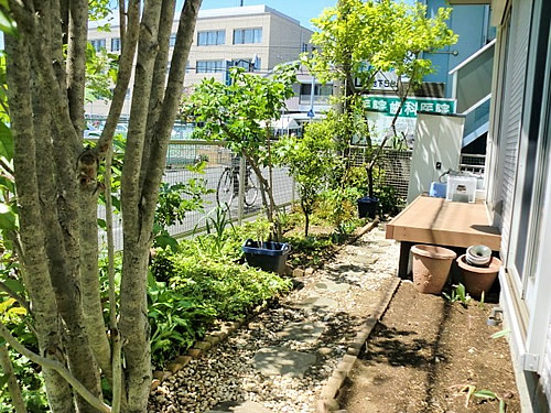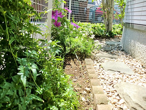 昨年秋よりお庭メンテナンスのご依頼をいただいておりますがこの度、ご家族さまのお車が新たに追加し、ガレージへ入出庫の際に玄関ポーチのコーナーを毎回気にしながらご乗車されていました。