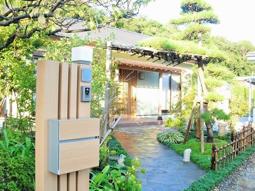平屋造りの和風建築とお庭を馴染ませ調和させてくれているのは、緑豊かな木々や植物たちです。