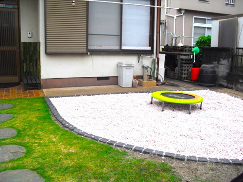 ・砂利下防草シート&化粧砂利敷き(TOYOぺブルピンク)