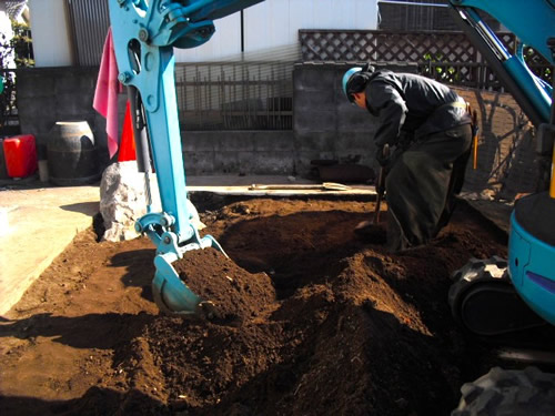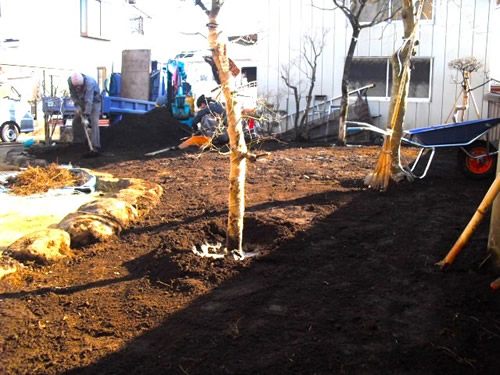 ・植栽地内土壌改良(・黒土、燻炭、バーク施肥、ガーデンモスマルチング、)